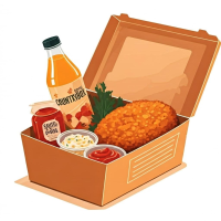 Snitel cotlet alb 100g, garnitura, suc 330ml, ketchup dulce