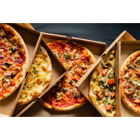 Blat,sos de rosii,mozzarella,bacon,carnati,sunca,salam,masline,ciuperci,oregano