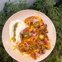 350 g, cartofi rosii 250 g, bacon 30 g, cascaval cheddar 30 g, jalapeno 20 g,sos aioli 30 g