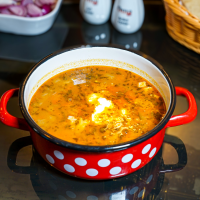 Supa de fasole ciolan/ceapa rosie/paine/desert