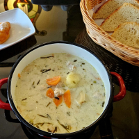 Ciorba de pui cu smantana si tarhon /paine/desert