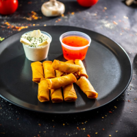 pachețele de primăvară cu legume, sos chili dulce, sos de usturoi zöldséges tavaszi tekercs, édes csiliszósz, fokhagymaszósz