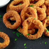 piept de pui sau aripi de pui crispy, 2 porții de cartofi prăjiți, 2 sosuri la alegere