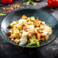 salată, ciuperci, roșii, castraveți, crutoane, parmezan, sos caesar saláta, gomba, paradicsom, uborka, kruton, parmezán, cézáröntet