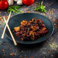 ciuperci, ceapă, ghimbir, usturoi, ardei chili, alune, sos dulce, sos de soia gomba, hagyma, gyömbér, fokhagyma, csilipaprika, mogyoró, édes szósz, szójaszósz