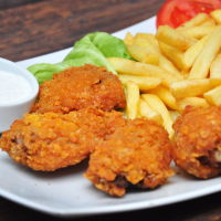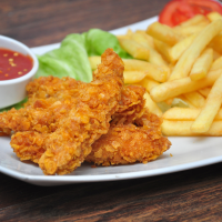piept de pui crispy cu condiment mexican, cartofi prăjiți, sos mexican la alegere