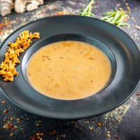supă cremă de ciuperci de pădure cu ceapă prăjită crocantă