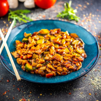 ciuperci, morcovi, bambus, ardei, ciuperci urechi de lemn, sos 5 arome gomba, sárgarépa, bambusz, paprika, fafulgomba, 5 ízű szósz