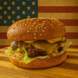 Angus marhahús burger 250 gr + Háziszósz + Chilli szósz + Cheddar sajt + Iceberg saláta + Uborka + Hagyma +Paradicsom + 160 as zsemle +200g Szalmakrumpli