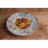 penne 150 g, dovlecei 30 g, roșii uscate 20 g, roșii cherry 20 g, ciuperci 40 g, ceapă roșie 20 g, morcovi 20 g, ardei 20 g, usturoi, ulei de măsline penne 150 g, cukkini 30 g, szárított paradicsom 20 g, cherry paradicsom 20 g, gomba 40 g, lila hagyma 20 g, sárgarépa 20 g, paprika 20 , fokhagyma, olívaolaj