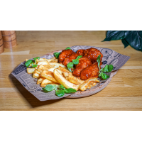 Aripioare de pui in sos BBQ , cartofi prajiti